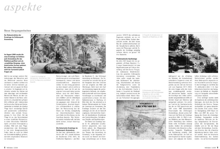 Im August 2008 wurde die neue Eremitage im Schlosspark Arenenberg (TG) für das Publikum geöffnet und als „sorgfältige Bergung“ eines historischen Gartens gefeiert. Bei näherer Betrachtung wirft der Gartenteil jedoch zahlreiche Fragen auf.