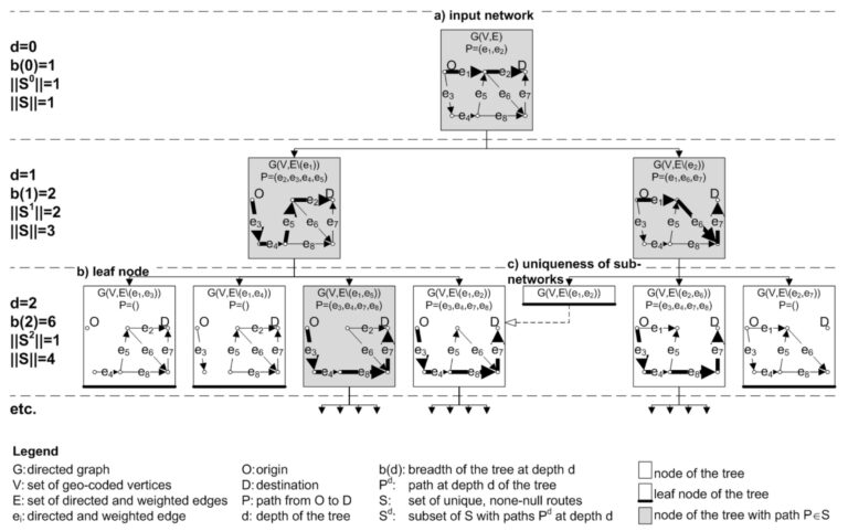 This paper presents an algorithm for route set generations. It is based on shortest path search with link elimination. A Breadth First Search is combined with a topologically equivalent network reduction to ensure a high diversity between the routes.