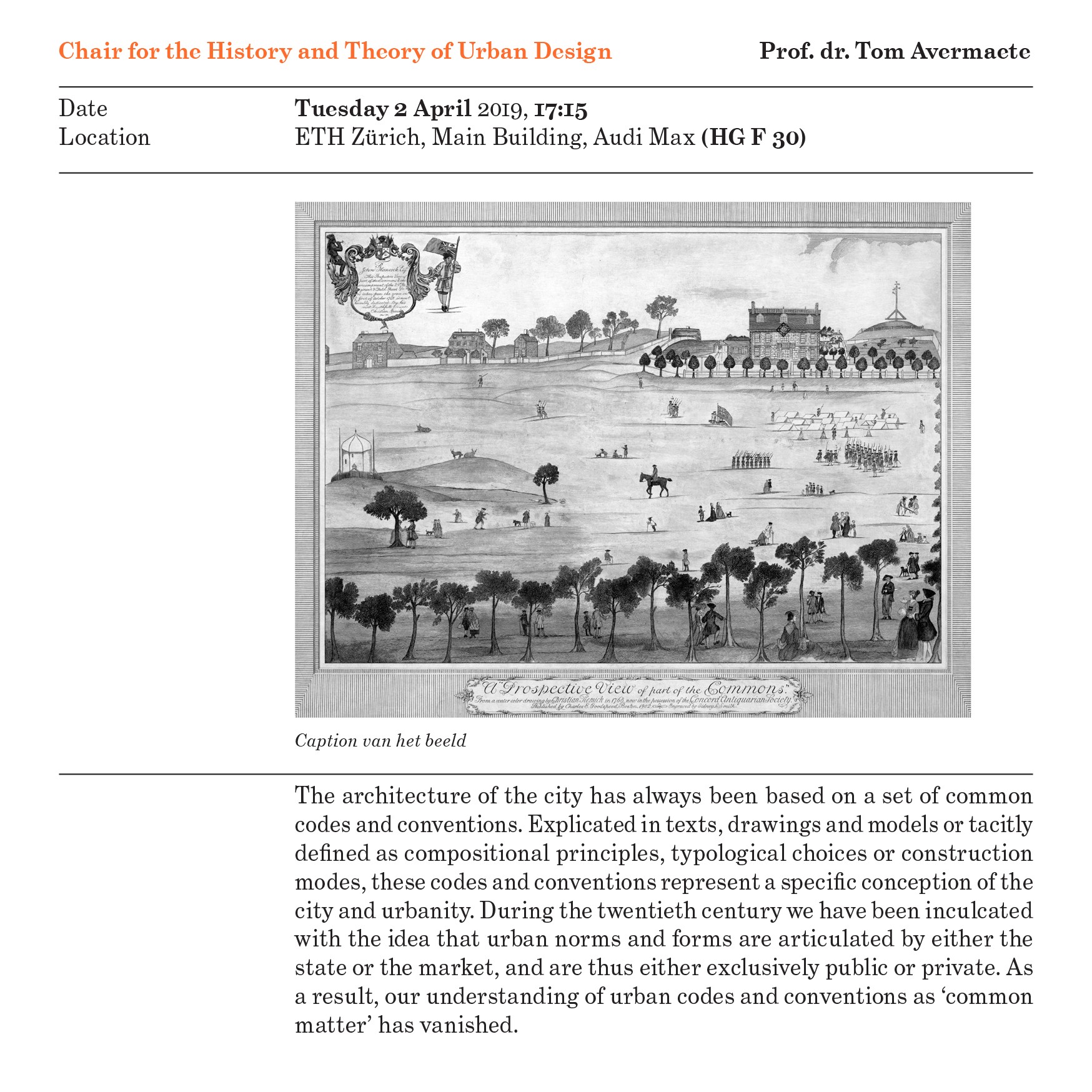 History and Theory of Urban Design, Prof. Dr. Tom Avermaete
