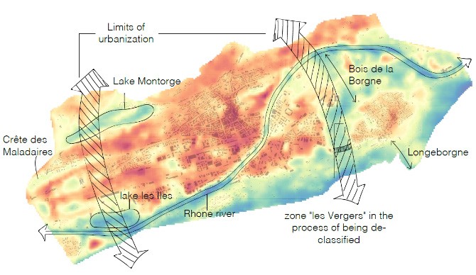 Überlagerung der Hitzekarte mit den schützenswerten natürlichen Landschaftselementen. © Sarah Mettan, ETH Zürich