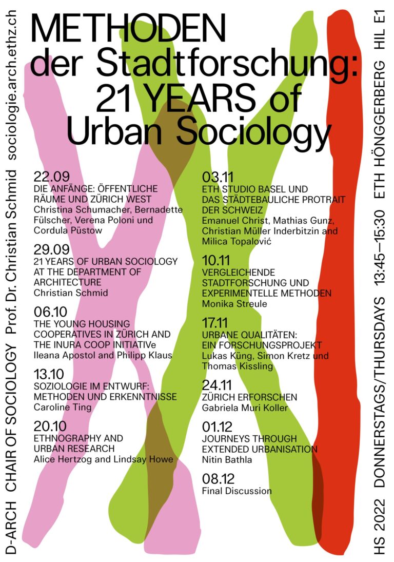 Diese Vorlesungsreihe vermittelt einen Rückblick auf die Arbeit der Dozentur Soziologie am D-ARCH und einen aktuellen Überblick über sozialwissenschaftliche Stadtforschung.