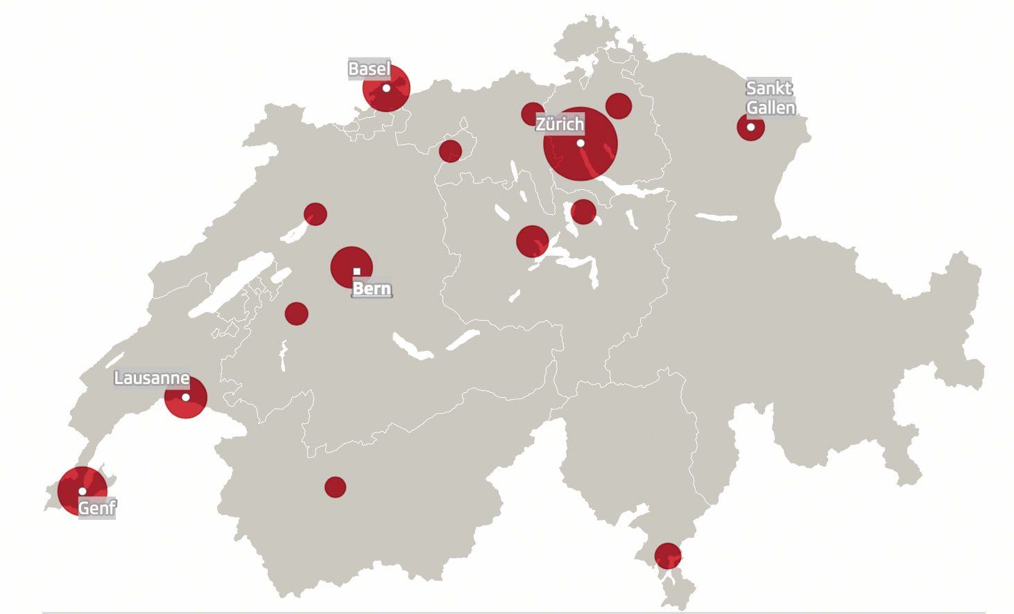 Die Stadt Zürich und ihr «Gürtel», der sich bis zu 35 Kilometer vom Zentrum weg ausdehnt, ist die grösste Agglomeration der Schweiz. 1.4 Millionen Menschen leben hier. Die kleinste Agglomeration des Landes ist Martigny mit gut 20’000 Einwohnerinnen und Einwohnern.