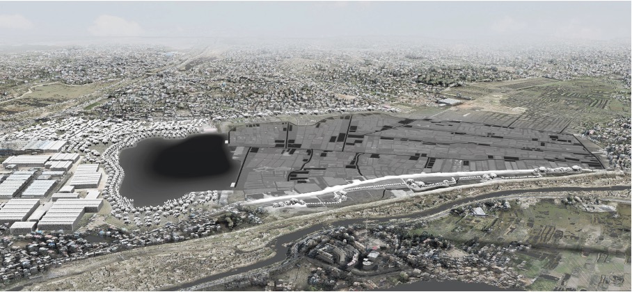 Landscape designers Dr. Philipp Urech, Alan von Arx, and Zhu Qianer developed a new city design based on resilient and multifunctional farming practices of periurban farmers (raised beds networks for vegetables, buffer basin for flood regulation, and ponds for ducks and fish production). Source: Design Research Studio of Dr. Philipp Urech © ETH Zürich