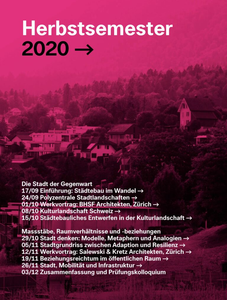 Die Vorlesungsreihe vermittelt grundlegende Kenntnisse im Städtebau. Dabei steht die Veranschaulichung des Beziehungsreichtums der Disziplin und dessen Handhabung im Planungs- und Entwurfsalltag im Vordergrund. Es werden zentrale Fragestellungen und Themenschwerpunkte der zeitgenössischen Städtebaupraxis und -theorie aufgezeigt. Ziel ist die Vermittlung eines breit angelegten systembezogenen Grundwissens, das die Synthese und Evaluation komplexer städtebaulicher Fragestellungen ermöglicht.