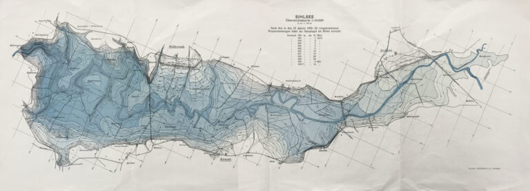 • Mappa dei livelli dell’acqua del lago artificiale, 1924-1937 circa. Autore sconosciuto. Copyright: Klosterarchiv Einsiedeln. KAE Plan 3.0225.0015.