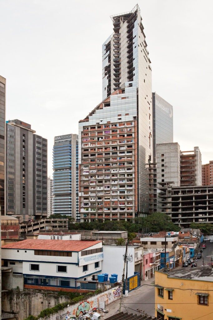 Bottom-up-Strategien sind eine Möglichkeit, die vorherrschenden städtischen Knappheiten anzugehen. Torre David, ein 45-stöckiges Bürohochhaus in Caracas, war fast fertig, als es nach dem Tod seines Entwerfers und der nationalen Bankenkrise, die 1994 die venezolanische Wirtschaft lahmlegte, aufgegeben wurde. Über ein Jahrzehnt lang vernachlässigt, wurde es 2007 zum improvisierten Zuhause einer Gemeinschaft von mehr als 1’000 Familien, die hier rechtsfrei und in der unsicheren Position von Hausbesetzern an einem Ort hausten, den viele als vertikalen Slum bezeichneten.