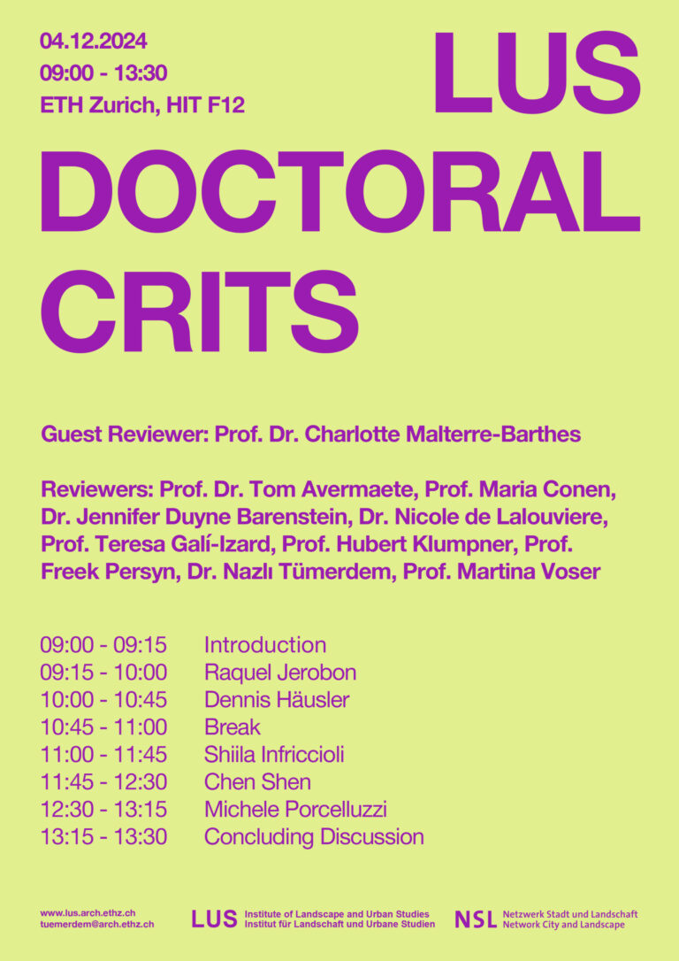 4 December 2024, 09:00 – 13:30 | ETH Zürich, Hönggerberg, HIT F 12. The autumn semester crits will follow a condensed format, featuring five presentations. We are honoured to welcome Prof. Dr. Charlotte Malterre-Barthes from EPFL