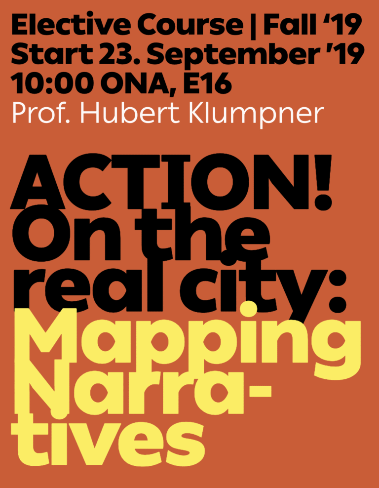 On Mondays, 10:00–12:00 | Elective course | ETH Zurich, Oerlikon, ONA E16, Neunbrunnenstrasse 50. Lecturers: Hubert Klumpner, Klearjos Eduardo Papanicolaou, Michael Walczak. The course develops new forms of urban literacy in learning from the complex, real-life