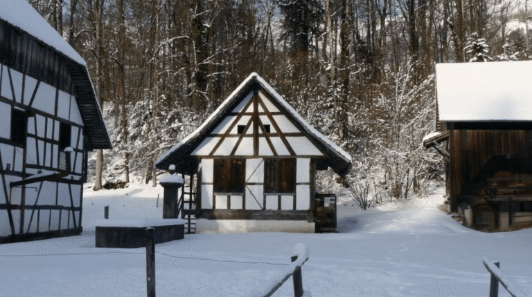 Was steht heute in Richterswil, wo einst dieses Weinbauernhaus stand? Einst Fachwerkstreben, heute Stockwerkebenen. Freilichtmuseum der Schweiz Ballenberg