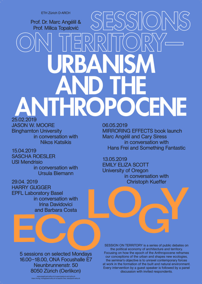 5 Sessions on selected Mondays, 16:00–18:00. ETH Zurich, Oerlikon, ONA Focushalle E7, Neunbrunnenstr. 50. Sessions on Territory is a series of public debates on the political economy of architecture and territory. Focusing on how the epoch